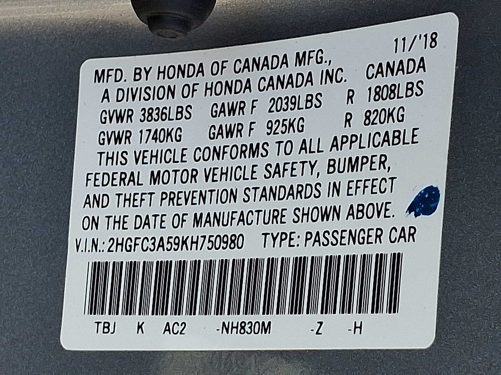 2HGFC3A59KH750980