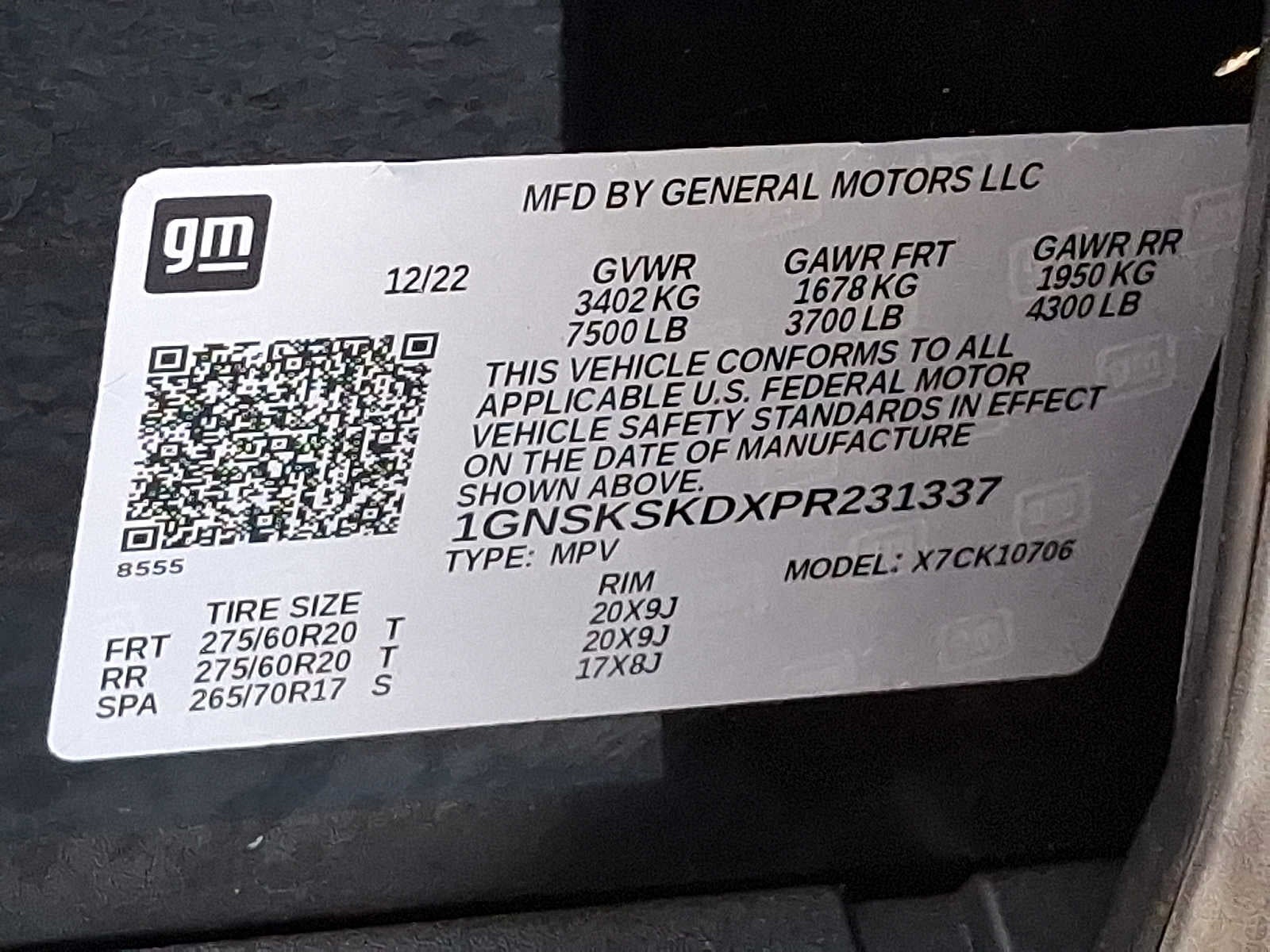 1GNSKSKDXPR231337